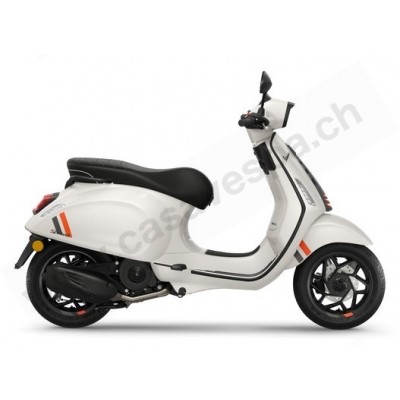 La Vespa Sprint S incarne l'héritage de générations de Vespas sportives, ajoutant du dynamisme dans toutes les situations. Son look sportif est accentué par des graphismes aux couleurs contrastées, tandis que le noir ajoute une note sophistiquée à des finitions tels que l'entourage rectangulaire des phares et les jantes en aluminium à six branches avec un design en spirale.